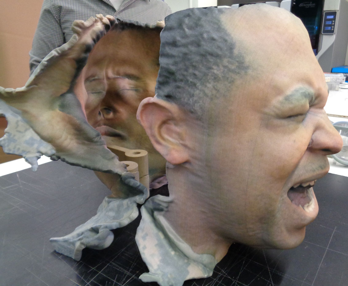 Please scroll through some of the digitally-rendered sculptures and photographs of US Combat Veterans experiencing traumatic brain injury and/or post-traumatic stress pieces being displayed in “Invisible Wounds.” This exhibit is in conjunction with the Austin Veterans Art Festival, a month-long arts event that features creative veterans nationwide.*Note: Each service member has participated voluntarily, signed an individual release, and has never been a patient in my service line.*