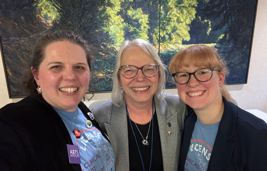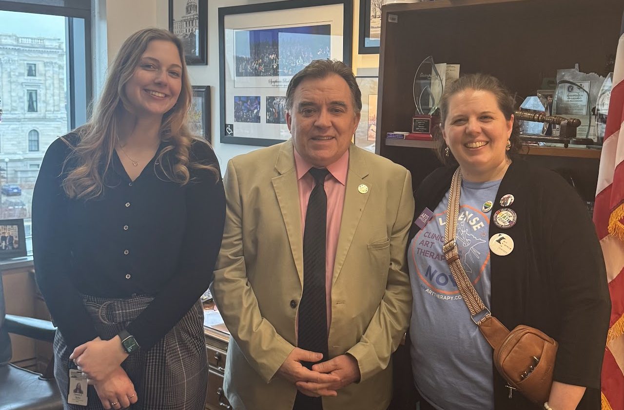 Generally speaking, legislators are by and large willing to talk with us and learn about what we’re doing. Often, when we explain what we do and why it’s important, they get it and support us. One thing I’ve learned is that they are just people and that appealing to the human element is huge. This year, some of our advocates met with a Senator after a particularly difficult meeting about Medicaid, and he shared that spending time with us after that meeting was calming and raised his spirits. But we also have to be convincing about why regulating art therapy in this way is as important as regulating other mental health professionals – and this is how and why several legislators from both parties chose to hop on board as co-authors after meeting with them this year, including past and current members of the Committees who will hear the bills.
