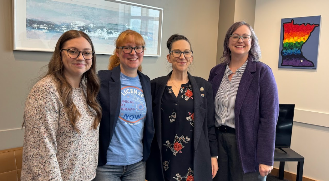 On March 4th, Minnesota art therapists visited the State Capital in St. Paul, marking our third annual Day on the Hill event aimed at increasing visibility and awareness of art therapy and advocating for SF1675 and HF2590 which would create state art therapy licensure. This year’s event was smaller and more focused than 2024, due in large part to the delayed start to the Minnesota House of Representatives’ session. Despite the delay, our community showed up in strength, and we had a wonderful day of conversations and connection with each other and our legislators!