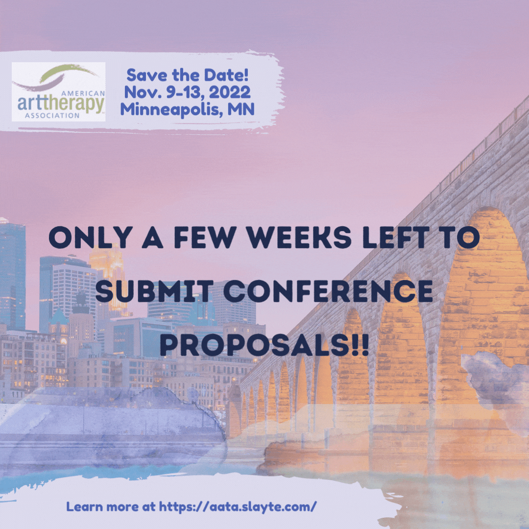 Don’t put it off! The deadline to submit a proposal to present at the American Art Therapy Association’s 53rd Annual Conference is April 3rd! To learn more about the requirements, please download the Call for Proposals document. Proposals must be submitted online. By submitting a proposal, you are agreeing to present in person in Minneapolis, MN, if your proposal is accepted.